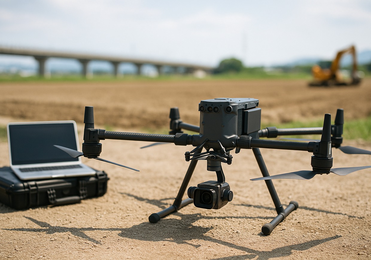 工事現場では、ドローンによる写真測量(フォトグラメトリ)を活用した土量計算や進捗管理が一般化しています。従来の手作業に比べて大幅に短時間で広範囲の測量が可能で、データの精度も向上しています。